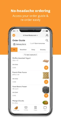 Our mobile app lets you search our complete product catalog, manage and update your ordering guide, and buy what you need at the moment you need it. It’s part of our commitment to giving you an ordering experience you’ll love.