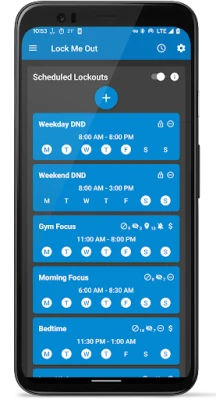 Lock Me Out has helped hundreds of thousands of people spend less time on their phones and other devices. It's proven to be an invaluable tool for students who wish to focus on studying, and for parents who wish to limit their children's screen time with a strict parental control app. Originally released in 2014, it continues to improve with new features based on user feedback.