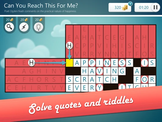 And there’s more! Once you’ve solved the quote, you’ll be challenged to unscramble letters from the puzzle to answer a riddle related to the quote.