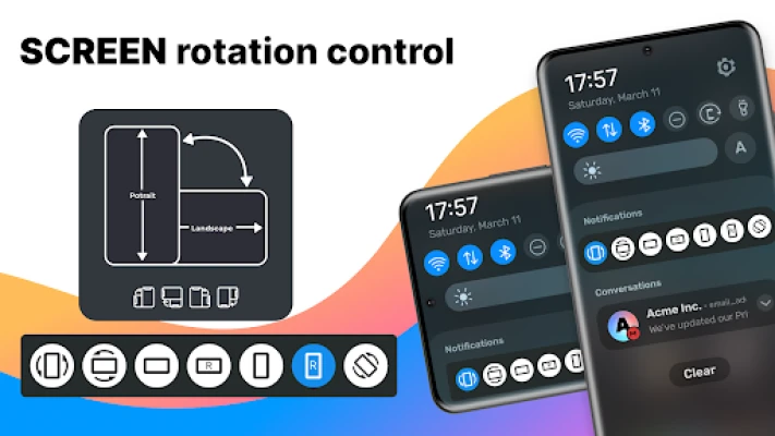 Control screen rotation and orientation app - Auto rotate screen landscape or portrait, effortlessly and easily!