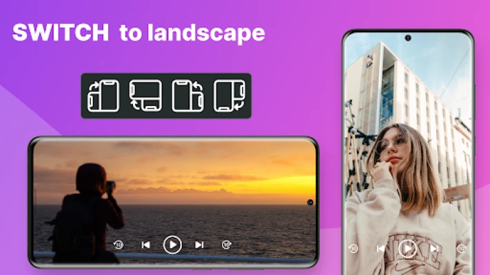 ☑️ Landscape (Sensor) : full screen auto rotate to a horizontal orientation based on a sensor.