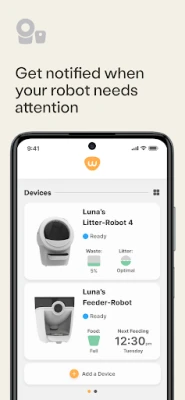 The Whisker Connect™ app allows you to remotely monitor and control your WiFi-enabled Litter-Robot unit(s) and Feeder-Robot unit(s) all in one place. This app brings you data about your cat’s litter box usage and your pet's feeding habits, giving you full control of your Litter-Robot 3 Connect and Feeder-Robot right from your phone.